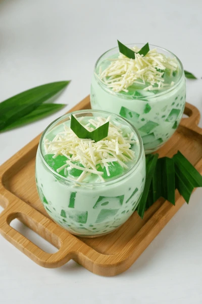 Rasa manis, seger, creamy cocok sebagai cemilan/penutup makan, terbuat dari 100% susu (tanpa gula, santan) isiannya terdiri dari jelly-jellyan, nata de coco, mutiara, sedikit air kelapa, keju.